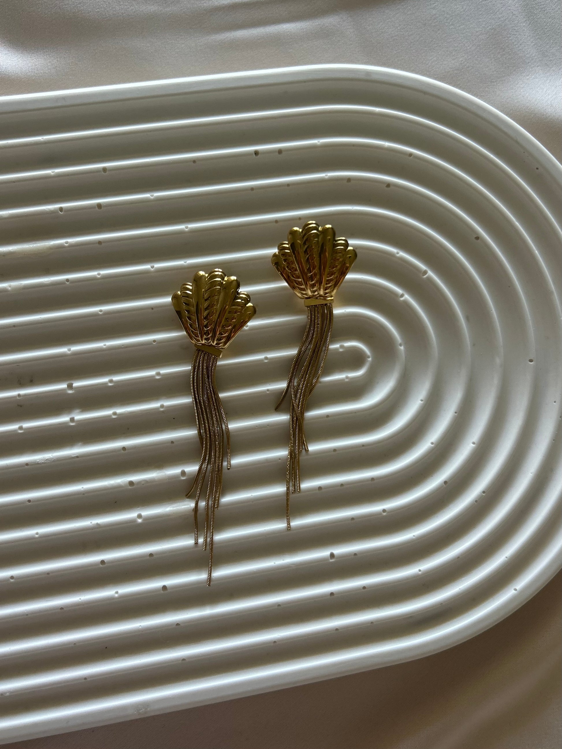Les Boucles d’oreilles Ariel sont faites en acier inoxydable doré. Leur longueur souligne le port de tête. Elles sont très élégantes et peuvent être portées dans la vie quotidienne comme lors d’événements comme un mariage.