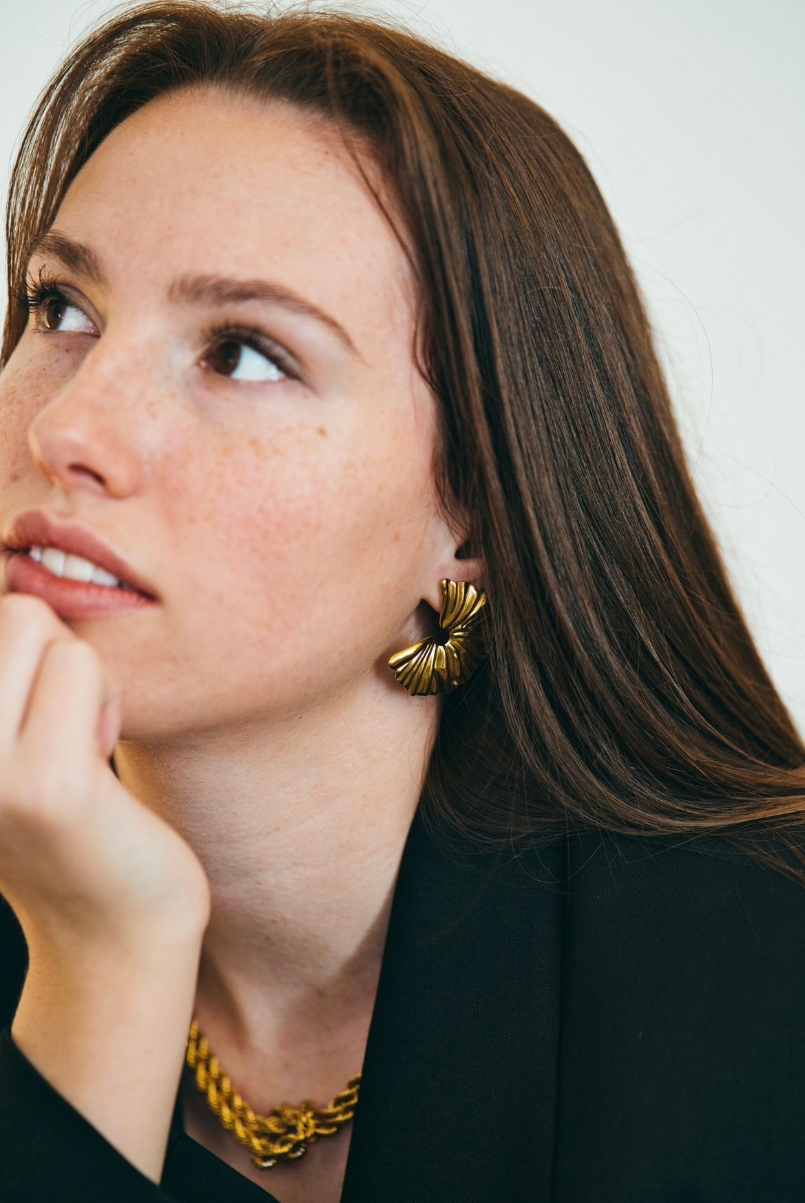 La paire de boucles d'oreilles Carla en croissant est une pièce tendance de la saison. À porter sans modération, de jour comme de nuit !