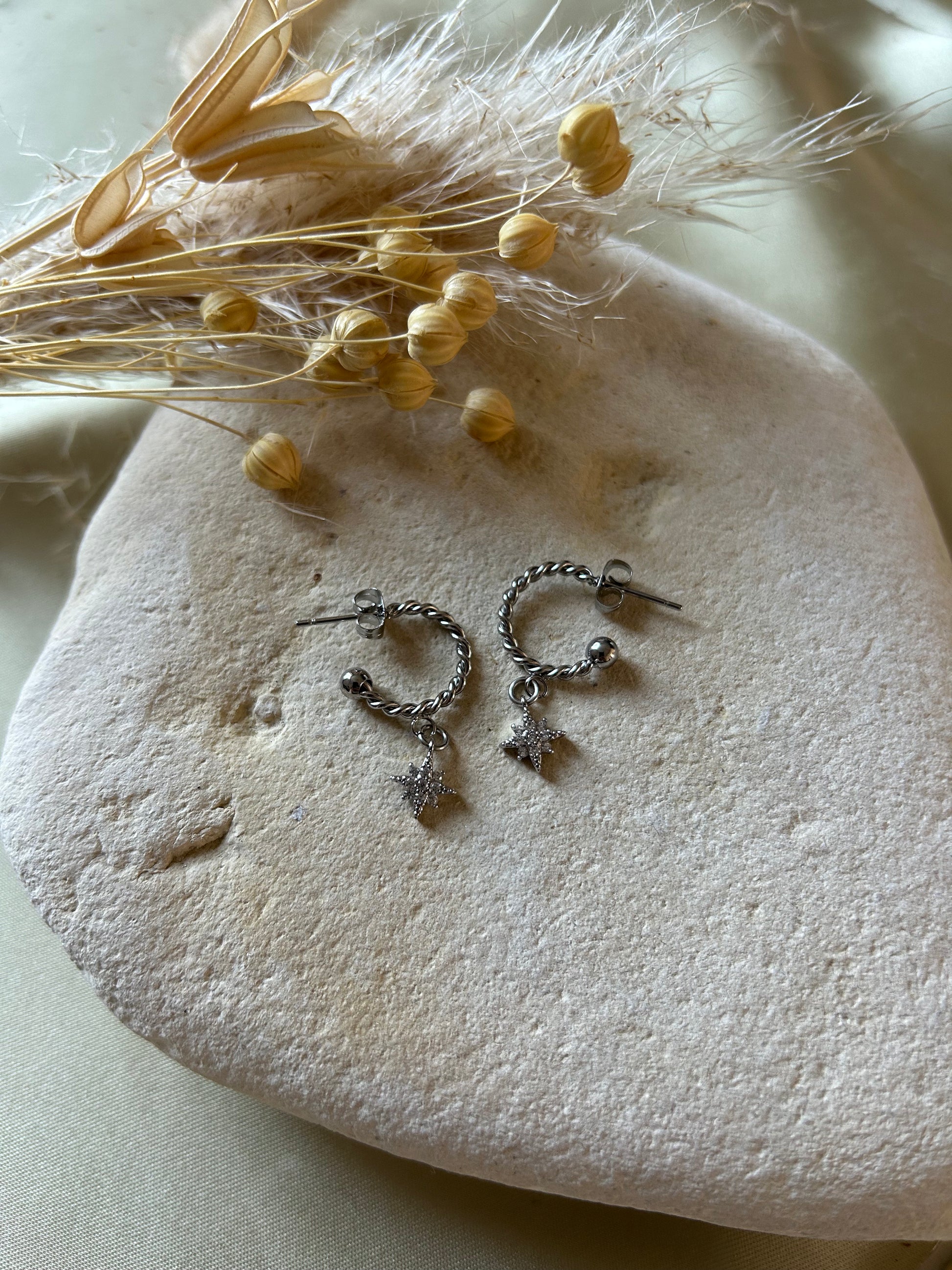 Cette paire de boucles d’oreilles est en acier inoxydable et est assemblée à la main avec amour dans notre atelier en France.