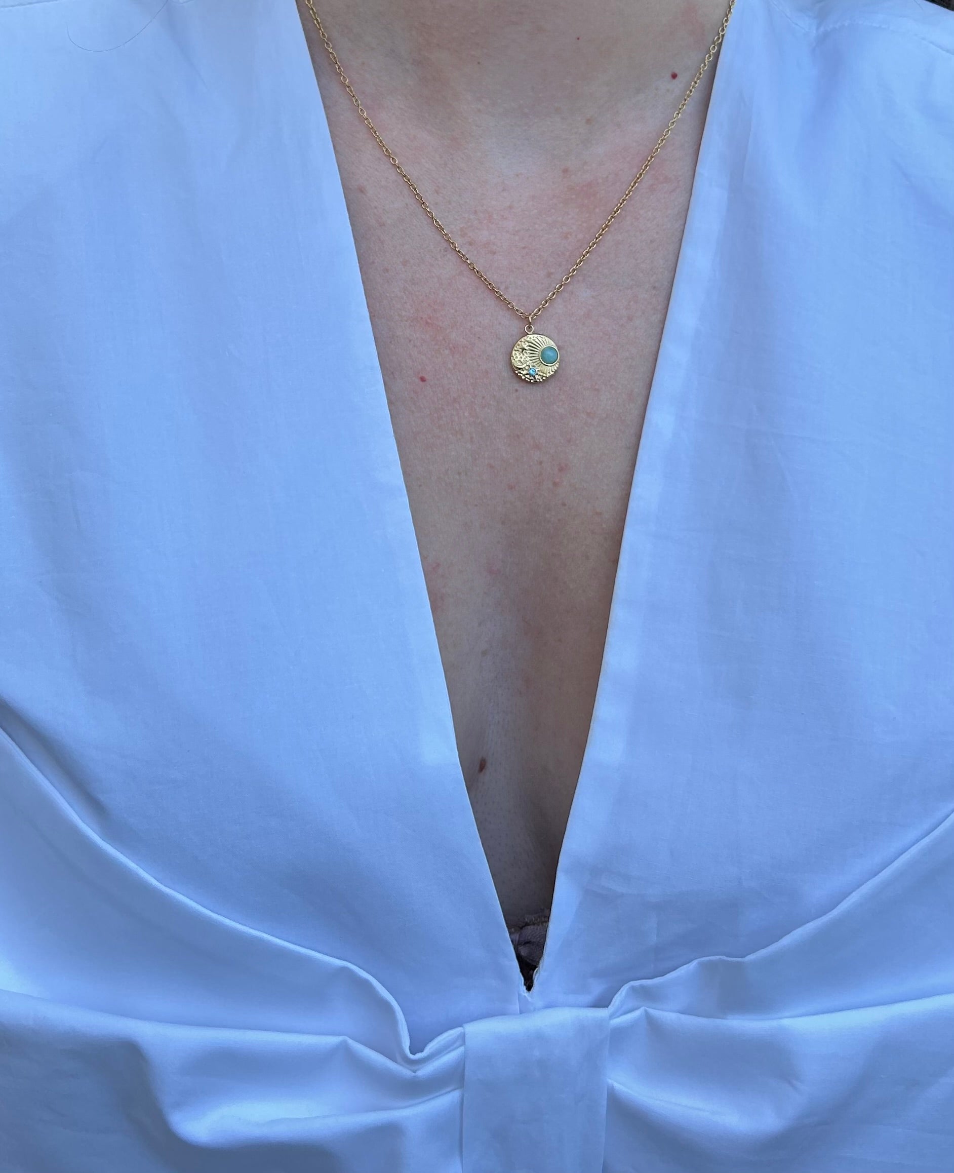 Le collier Astra en acier inoxydable et aventurine apportera une touche discrète et colorée à votre tenue, aux belles couleurs de l’été ✨
